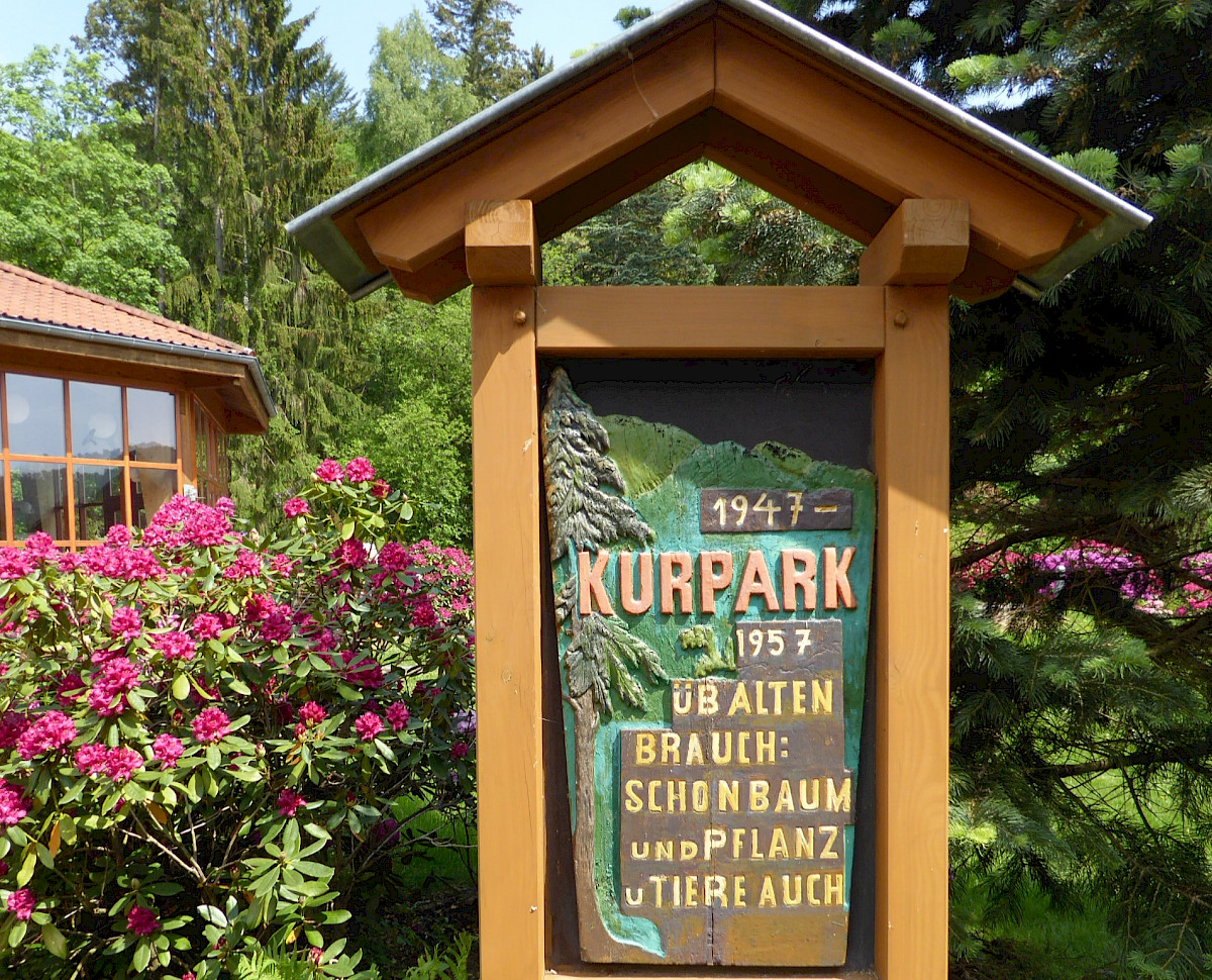 Der heutige Kurpark war die Parkanlage des Sanatoriums "Glück Auf", welches in den 1930er Jahren geschlossen wurde. Das Gebäude wurde zur Gemeindeverwaltung bzw. Kurhaus umfunktioniert. Der dazugehörige Park wurde als öffentlicher Kurpark im Jahr 1947 von dem Gärtner Albert Hoffmann und verschiedenen Gemeindearbeitern neu gestaltet. Es gab hier ein Alpinum mit seltenen Pflanzen und Raritäten, wie z. B. Edelweiß und Enzian. "Kleine Junggärtner" (Schulklassen) haben den Park mitgepflegt. Weiterhin soll es auch ein Vivarium mit verschiedenen Exoten, wie Palmen, Leguanen und Exen gegeben haben sowie eine Fasanerie. Für die Kurgäste des Ortes wurden alle 14 Tage Konzerte auf dem Konzertplatz veranstaltet und über Lautsprecher wurde jeden Tag Musik gespielt. Der hübsche Froschbrunnen sowie Bäume und Sträucher wurden mit Licht angestrahlt.