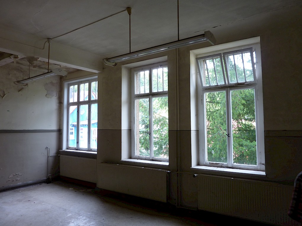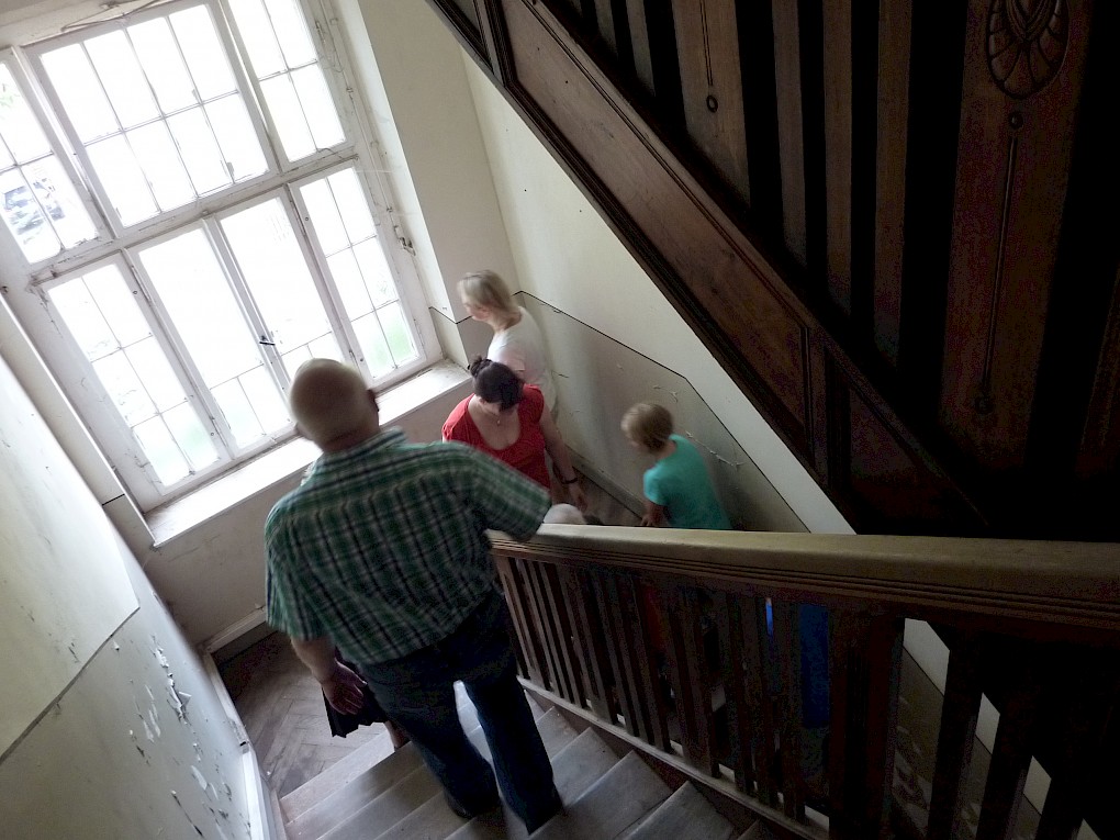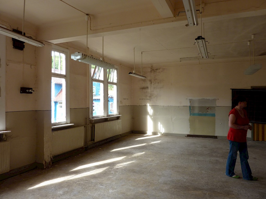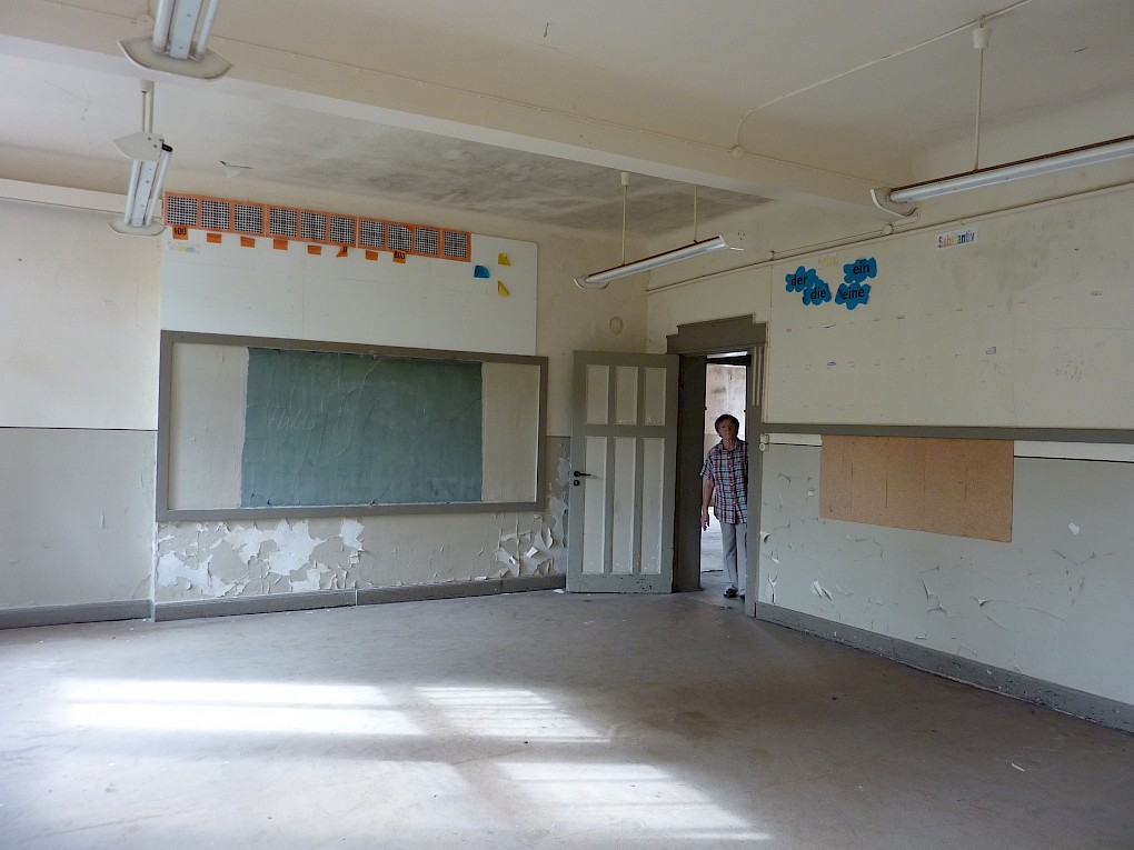 Diese Möglichkeit wurde rege genutzt, um Erinnerungen aufzufrischen und bei Kaffee und Kuchen alte Geschichten zu erzählen. Geplant ist nun ein Umbau der Schule in ein Café mit Pension. Ein paar Eindrücke vom Rundgang in dem 100-jährigen Gebäude haben wir mit dem Fotoapparat festgehalten.