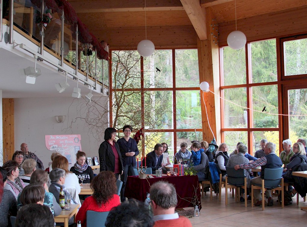 Die Autorin des "Im Schatten der Hexen"-Zyklus, Kathrin R. Hotowetz, eroberte mit ihrer frisch-fröhlichen und humorvollen Art das Publikum im Sturm. Den Weg zu uns nach Sülzhayn haben an diesem Abend mehr als 100 Gäste aus nah und fern gefunden.