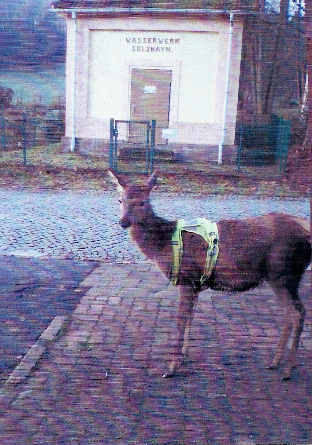 Er hatte sich mit dem Kopf an einem zerrissenen Maschendrahtzaun verfangen. Peter Pohl räumte ihm wenige Überlebenschancen ein, doch die gute Pflege und Zuwendung der beiden Pohls päppelten das Kitz auf.